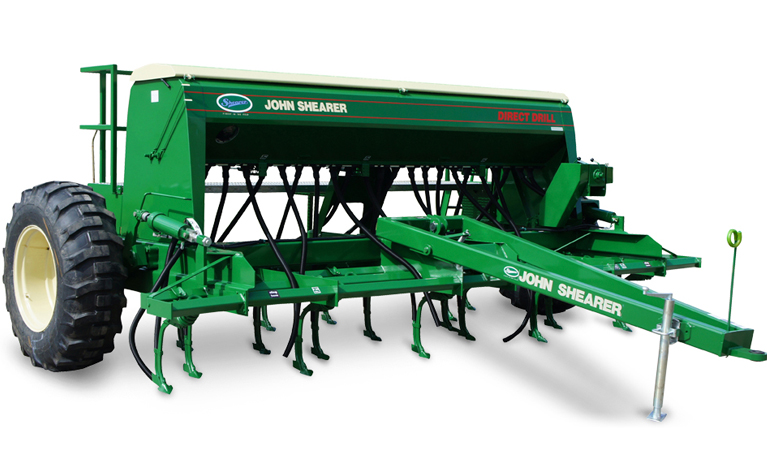 When double cups are fitted the delivery of grain and fertilizer can be split for deep banding or placing different material in alternate rows. Clamp-on coulter assemblies, fitted to the front rows provide another option. The tyne and underframe are designed to promote excellent trash flow and enhance the machine's operation in conservation farming. In the Shearer tradition the direct drills are robust and heavily constructed in the areas that count� and built to last. The result is less down time, for a more efficient and cost effective operation. A truly versatile machine, John Shearer direct drills provide farmers with a multitude of options for many different conditions and farming practices.